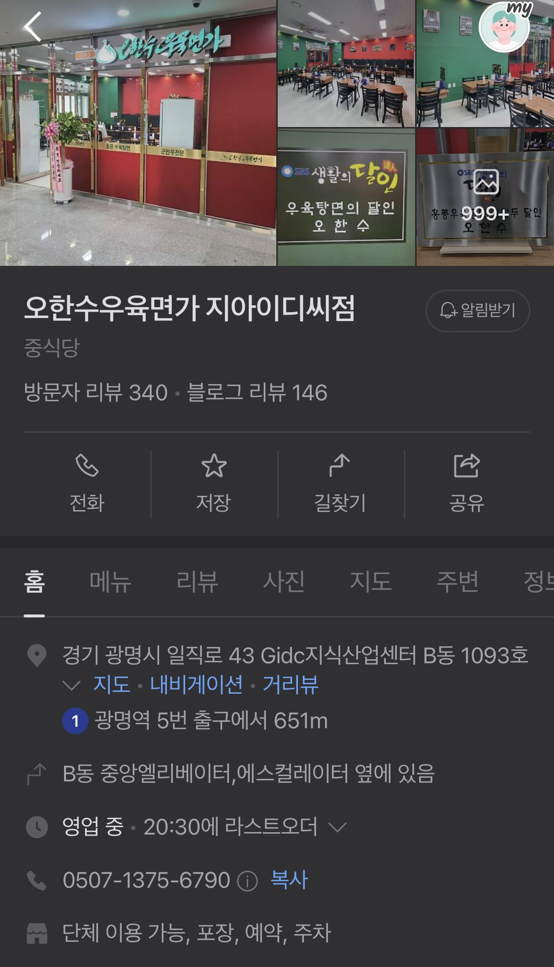오한수우육면가 지아이디씨점