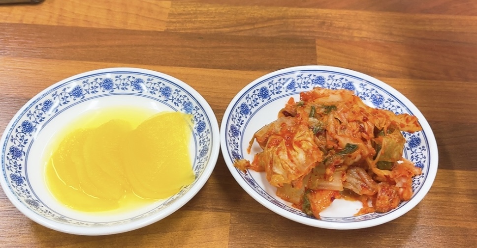 미리 세팅되어 식탁위에 올려진 단무지랑,